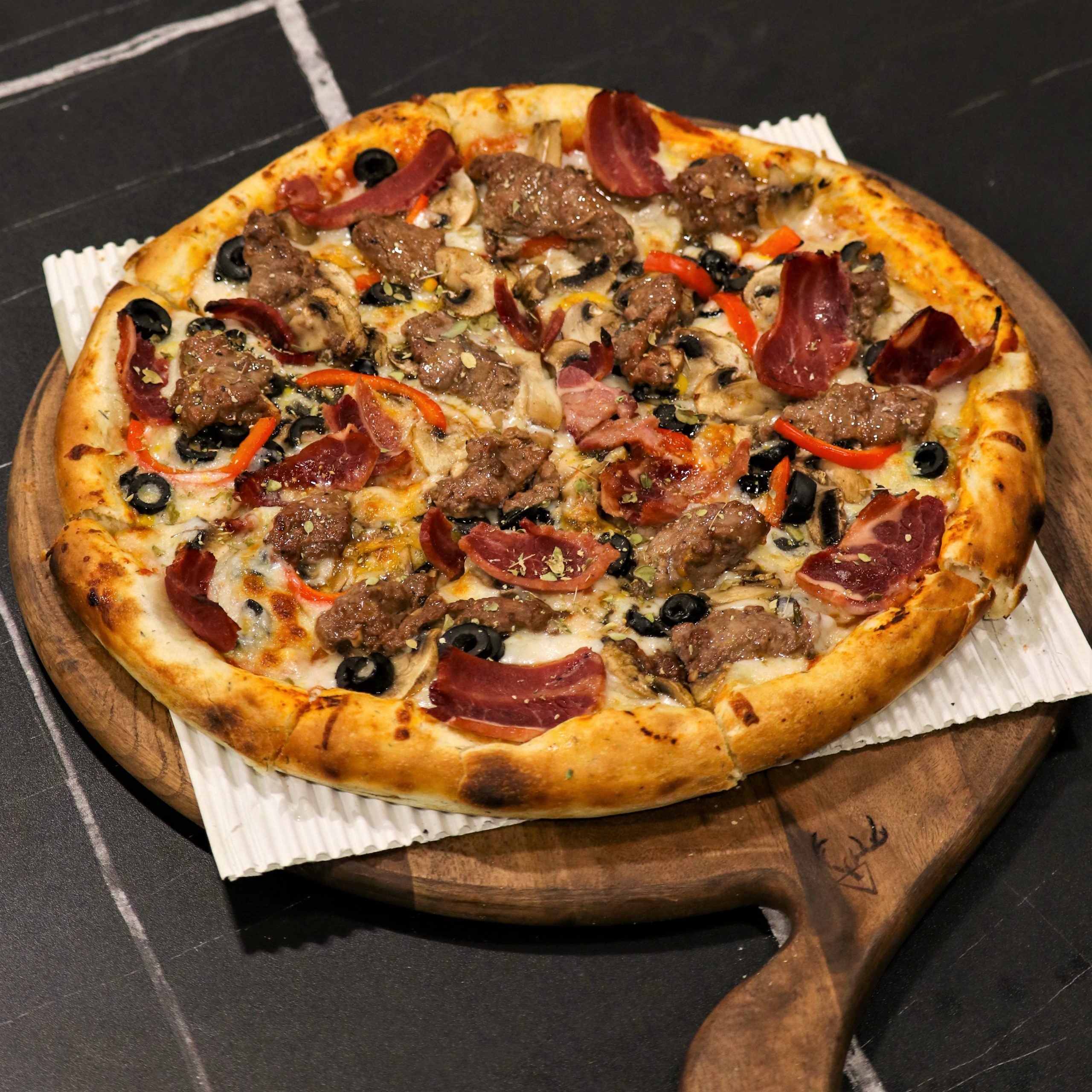![]() | پیتزا استیک بیکن | 610.000 تومان | راسته گوسال | بیکن 97% | پنیر ترکیبی | | زیتون | سس مارینار |